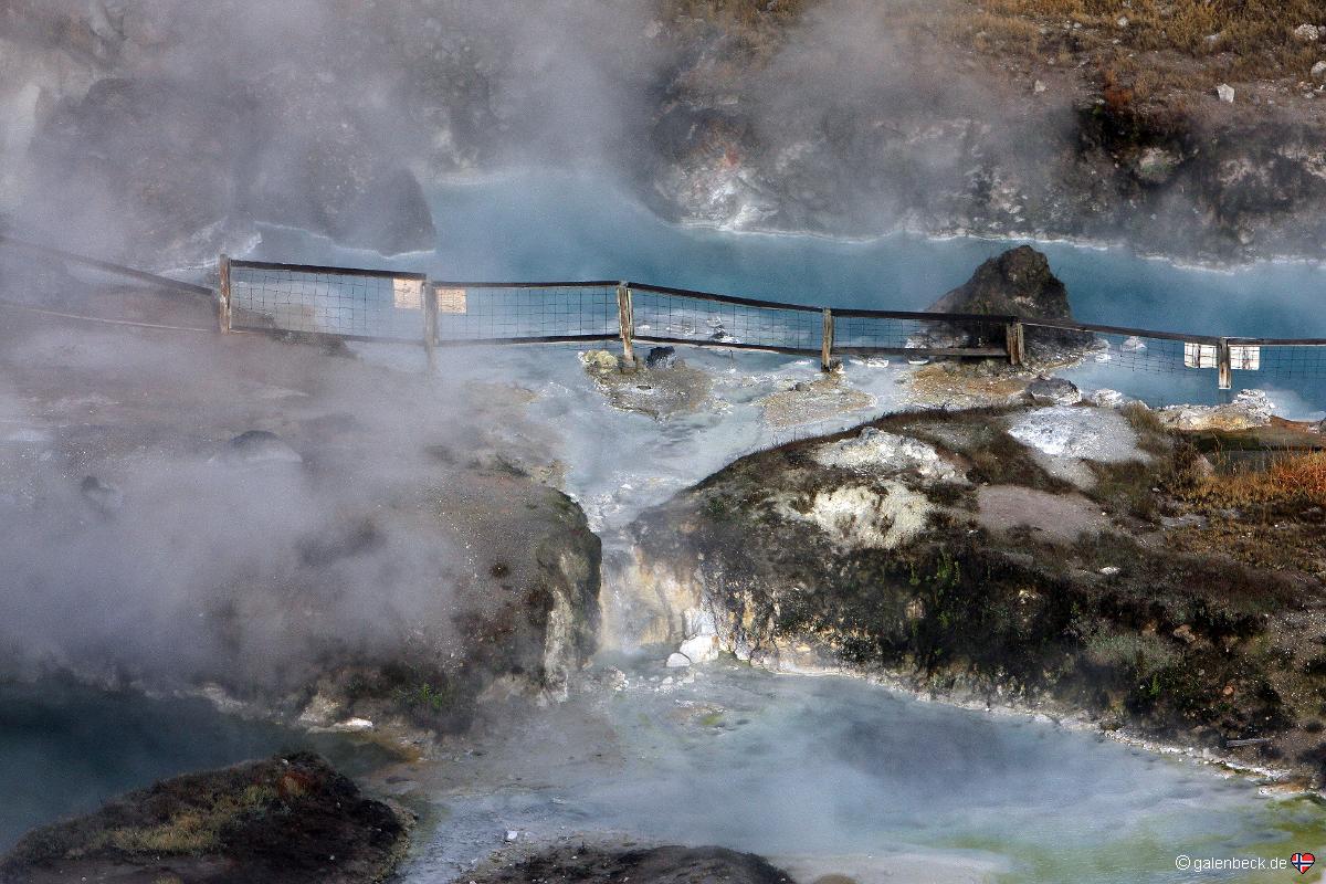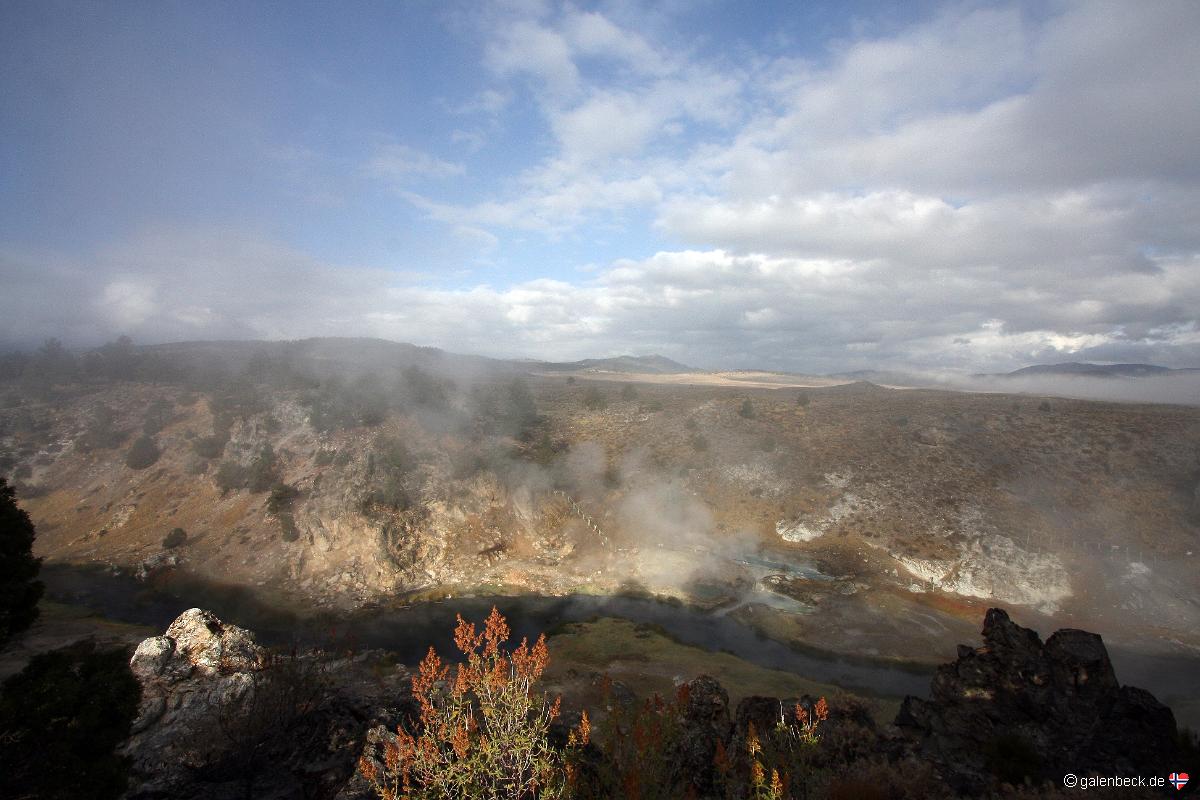 Thermalquellen besichtigten. Trotz Sonnenschein ist die Aussicht