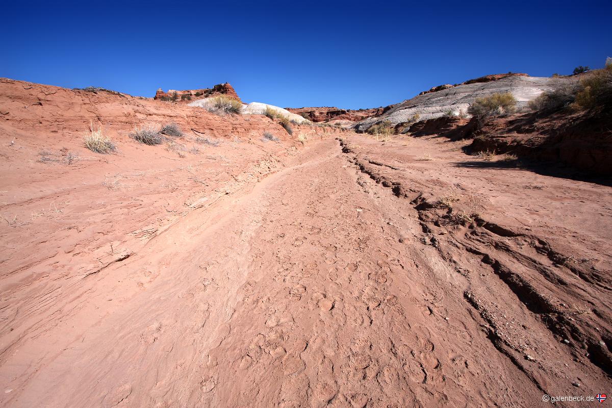 | Vom Parkplatz aus, geht man zurück in den Wash und dann nach rechts....Männerrechts,